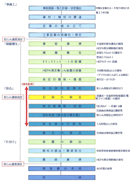 アスベスト工事においては、各現場毎に適切な有資格の配置が義務付けられています。弊社ではこれまでの多くの現場経験者からなる資格者が事前調査・施工計画から工事完了後の維持まで責任施工致します。